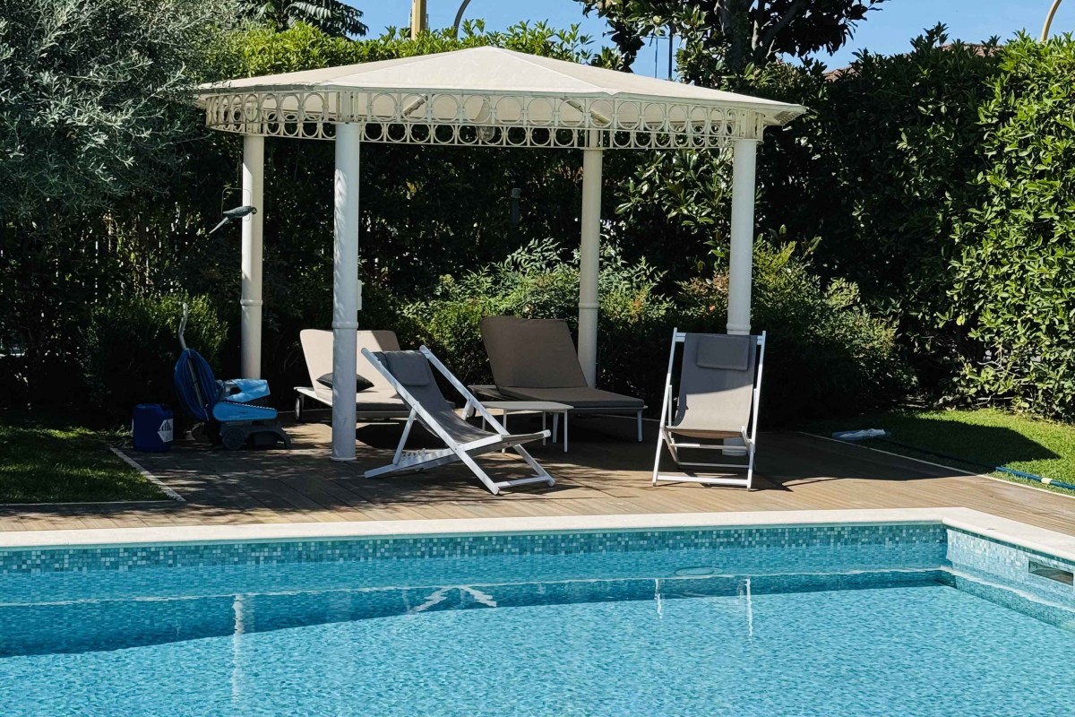 Situata nella prestigiosa località di Forte dei Marmi, questa villa si sviluppa su tre livelli offrendo ambienti ampi e confortevoli, ideali per chi desidera vivere circondato dal lusso e dalla tranquillità.Al piano principale si trova un ampio salone, perfetto per momenti di relax o per accogliere ospiti in un contesto elegante e raffinato. La cucina abitabile, spaziosa e luminosa, è pensata per chi ama cucinare e condividere pranzi e cene in famiglia o con gli amici. Accanto, la sala da pranzo offre uno spazio dedicato per gustare i pasti in un’atmosfera raccolta e accogliente.